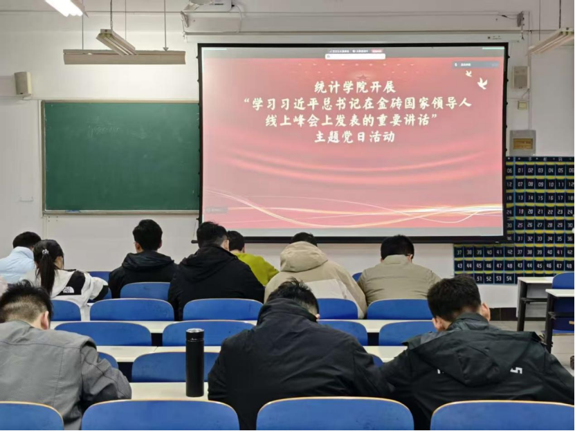 为深入学习习近平总书记在金砖国家领导人线上峰会上发表的重要讲话的精神内涵,应对时代挑战,10月22日,统计学院开展“学习习近平总书记在金砖国家领导人线上峰会上发表的重要讲话”主题党日活动,全体学生党员共同参与。