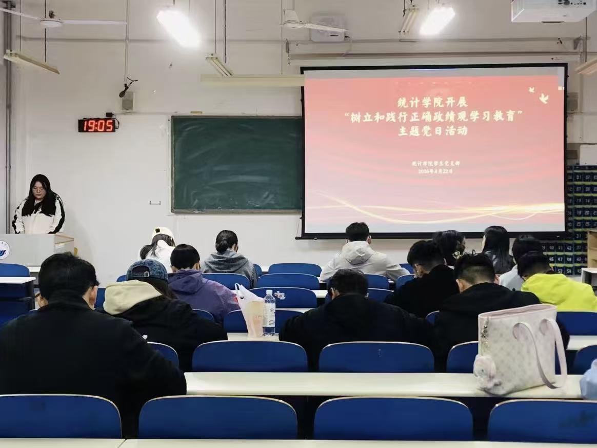 4月21日,统计学院开展了“树立和践行正确政绩观”主题党日活动,学院全体学生党员参与本次活动。