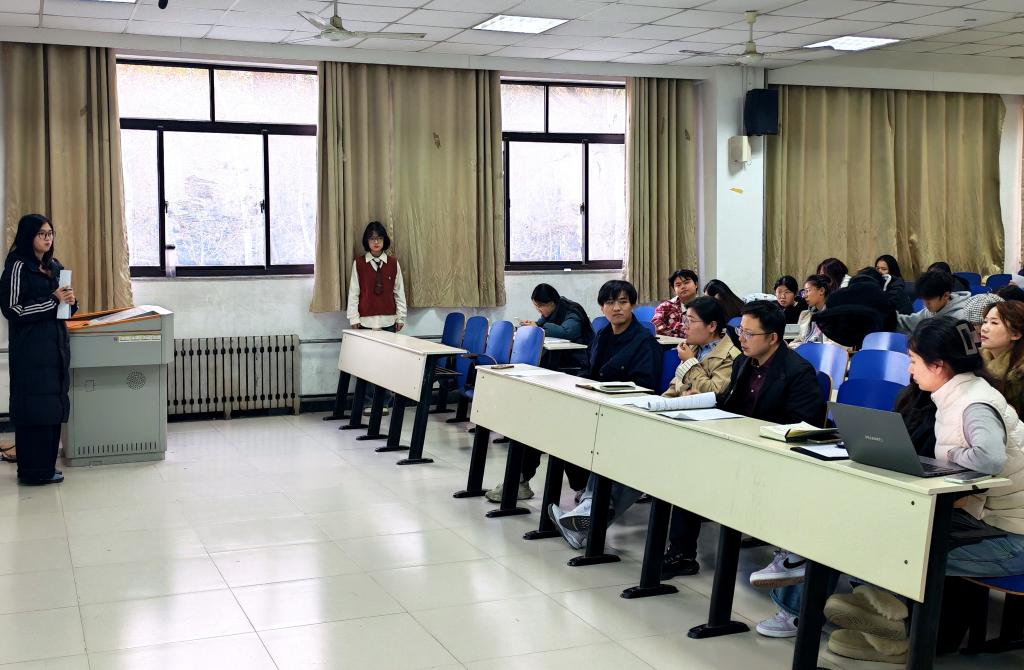 活动首先进入参赛作品的分享及优化环节。各参赛团队就当前研究进展进行汇报,研究领域涵盖农产品产业发展、公共政策认知、技术应用影响等方向。汇报同学通过PPT展示,分别从研究背景、理论框架、研究方法及创新点等方面进行了阐述,展现了各自团队的前期准备和多元研究视角。