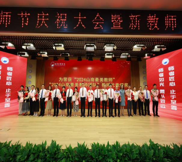 9月10日下午,在第四十个教师节来临之际,学校举行了2024年教师节庆祝大会,坚持以习近平新时代中国特色社会主义思想为主导,深入学习贯彻党的第二十大和二十届二中、三中全会精神,大力弘扬教育家精神。发挥榜样的示范引领作用,认真组织开展“十大师德标兵”、“山商最美教师”、“齐鲁最美教师”评选活动。贾小爱老师荣获“泰山学者”、李丽老师荣获“2024山商最美教师”、汪昕怡老师荣获“先进个人”。